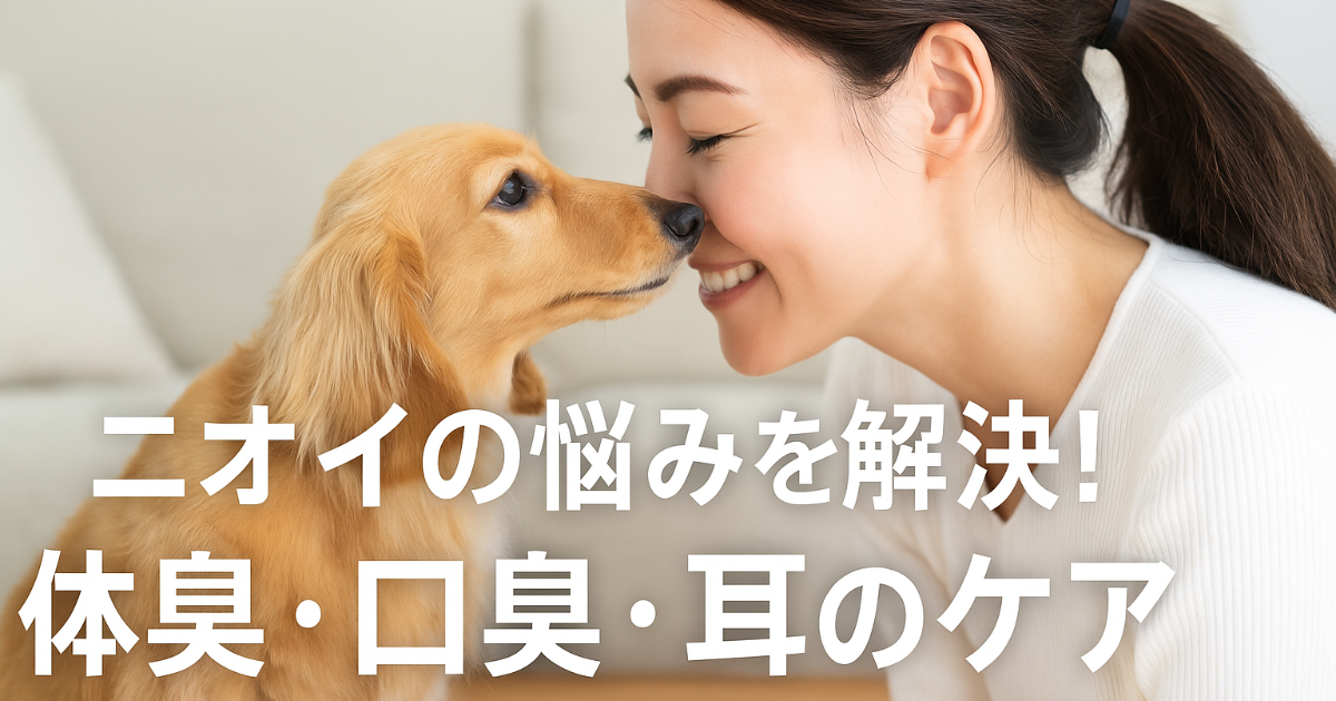 「犬だから仕方ない」と諦める前に、ニオイの元を突き止めてケアしてあげましょう。 ニオイが消えるだけでなく、隠れていた皮膚病や歯周病の早期発見にもつながります。